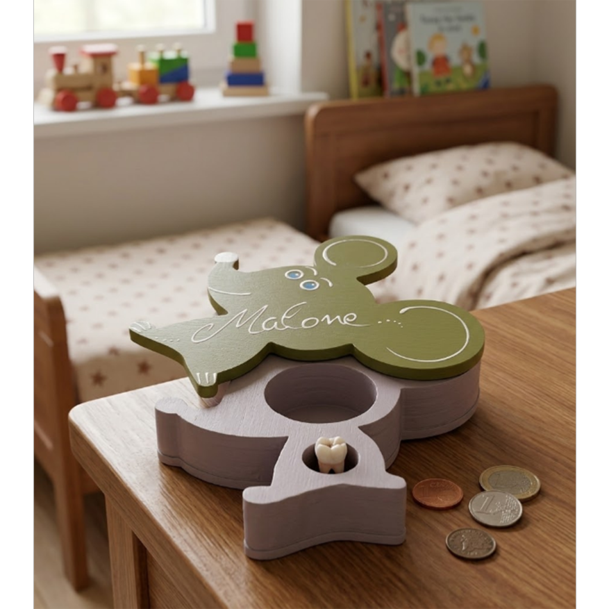 -Boîte à dents de lait en forme de petite souris avec le Prénom de votre enfant.