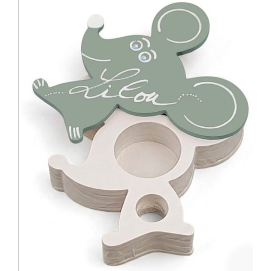 -Boîte à dents de lait en forme de petite souris avec le Prénom de votre enfant.