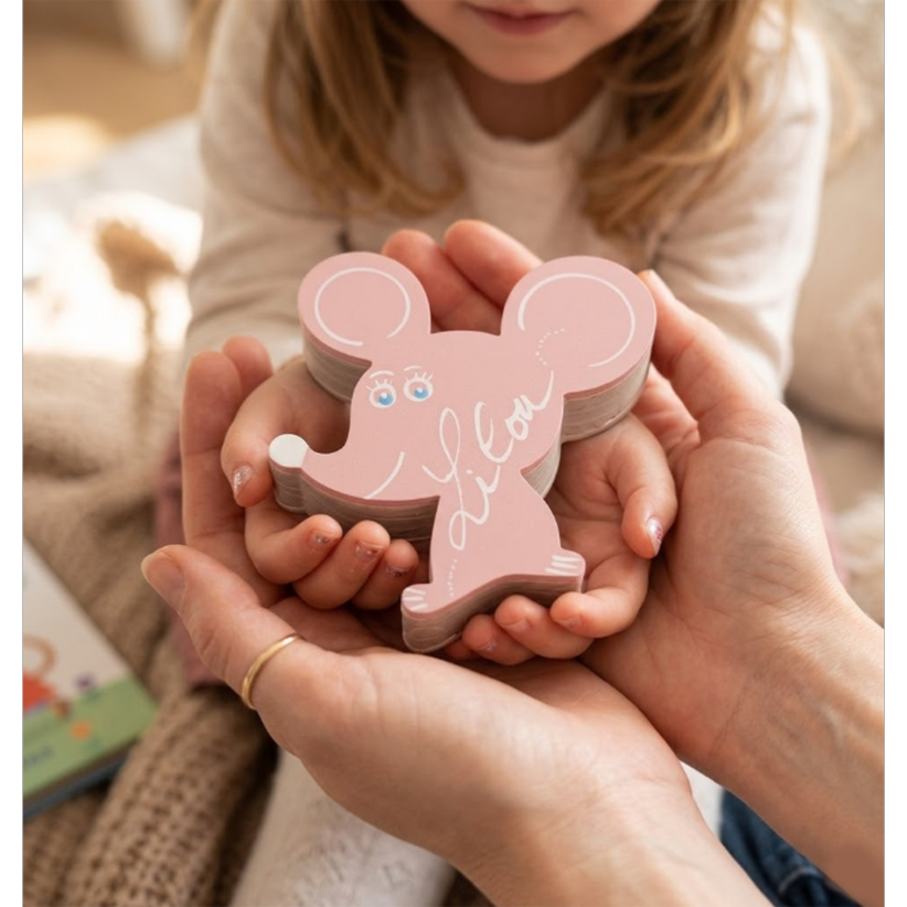 -Boîte à dents de lait en forme de petite souris avec le Prénom de votre enfant.