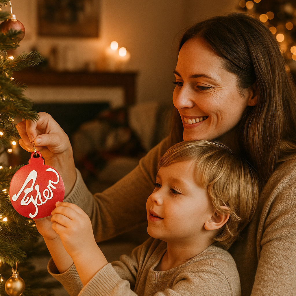 Le prénom de votre enfant est découpé à la main à la scie à chantourner, rendant chaque Boule de Noël totalement unique. Une finition au vernis satiné vient sublimer le tout pour un rendu à la fois doux et résistant. Le Prénom de votre enfant est découpé et collé sur la boule de Noël. Avec un petit cordon doré ou argenté pour le suspendre dans le sapin.