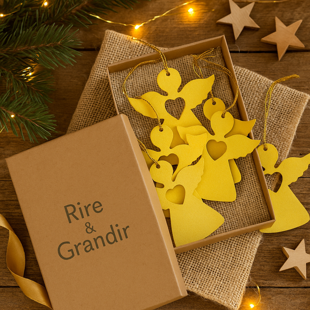 ✔ Nous proposons cette déco forme Ange jaune, en harmonie avec les couleurs de Noël et de votre sapin. Avec son petit cœur découpé entre les ailes.