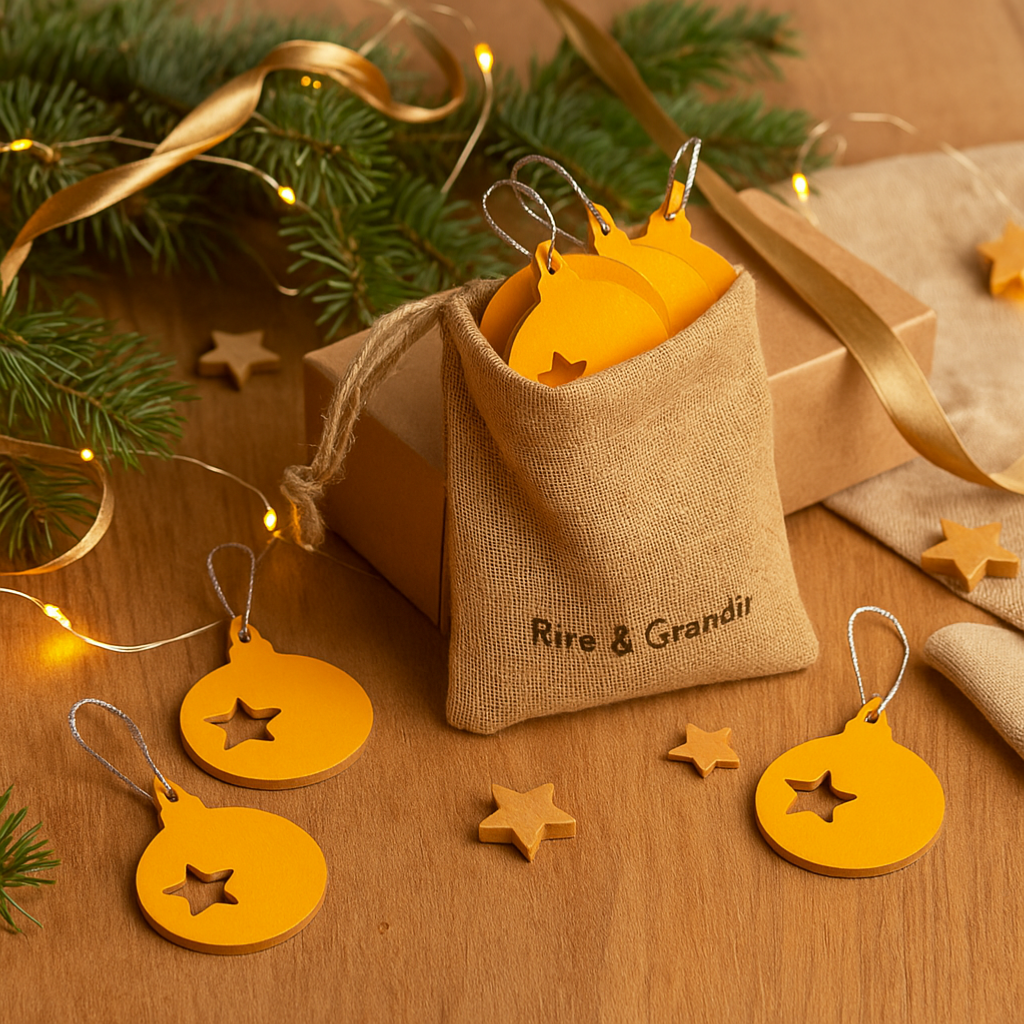 Chaque déco est faite à la main, rendant chaque Déco de Noël totalement unique. Une finition au vernis satiné vient sublimer le tout pour un rendu à la fois doux et résistant. Avec un petit cordon doré ou argenté pour le suspendre dans le sapin.