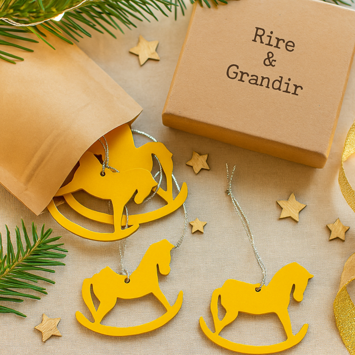 Noël… Cette déco au motif Cheval à Bascule marquera les esprits et accompagnera votre enfant au fil des années.