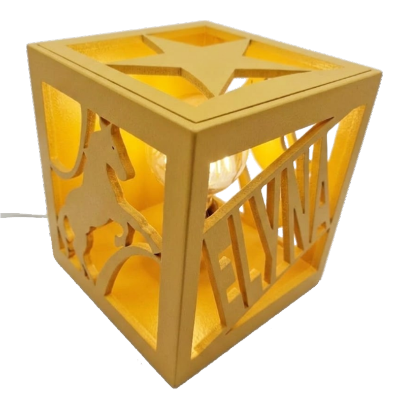 Craquez pour cette jolie lampe forme cube personnalisable au Prénom de votre enfant de couleur "or tournesol".