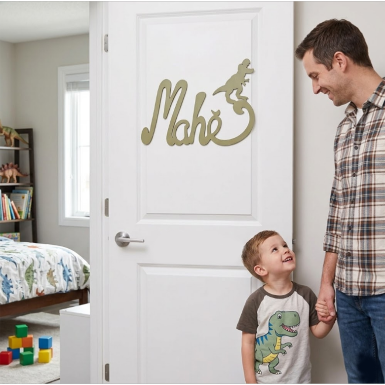 Nouvelle Plaque de Porte - Motif Dino - Couleur Feuille de Palmier