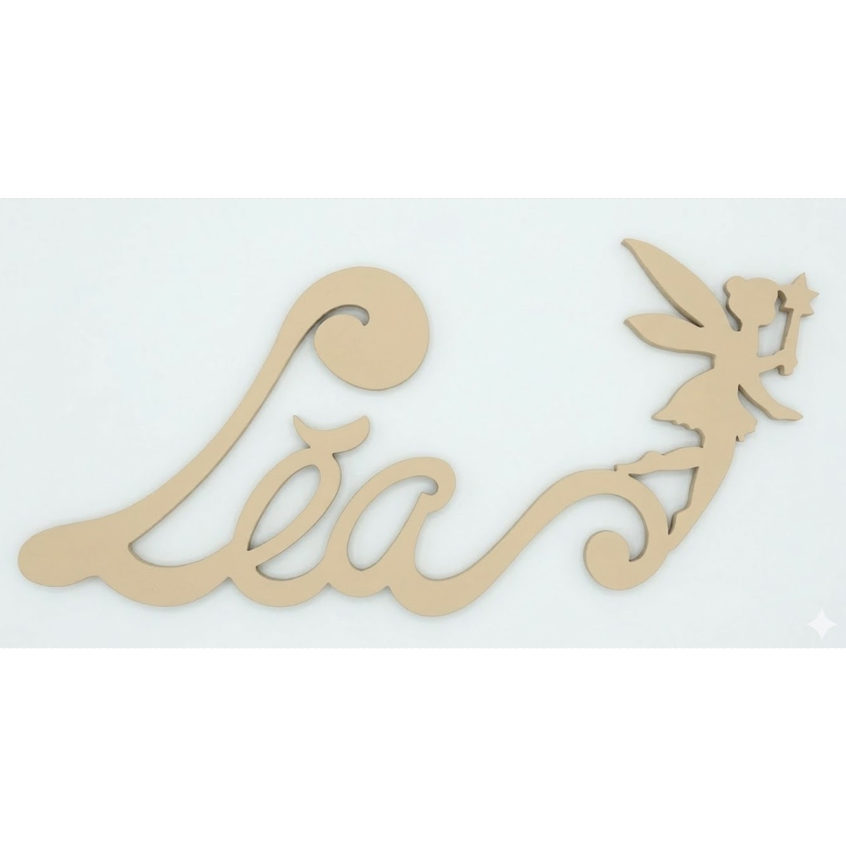 Découvrez cette jolie plaque de porte personnalisée en bois, avec motif Fée en bout de prénom, de couleur tendance Chêne Pâle.