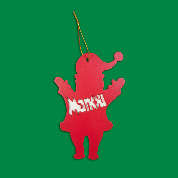 Le prénom de votre enfant est découpé à la main à la scie à chantourner, rendant chaque Père Noël totalement unique. Une finition au vernis satiné vient sublimer le tout pour un rendu à la fois doux et résistant. Avec un petit cordon doré ou argenté pour le suspendre dans le sapin.