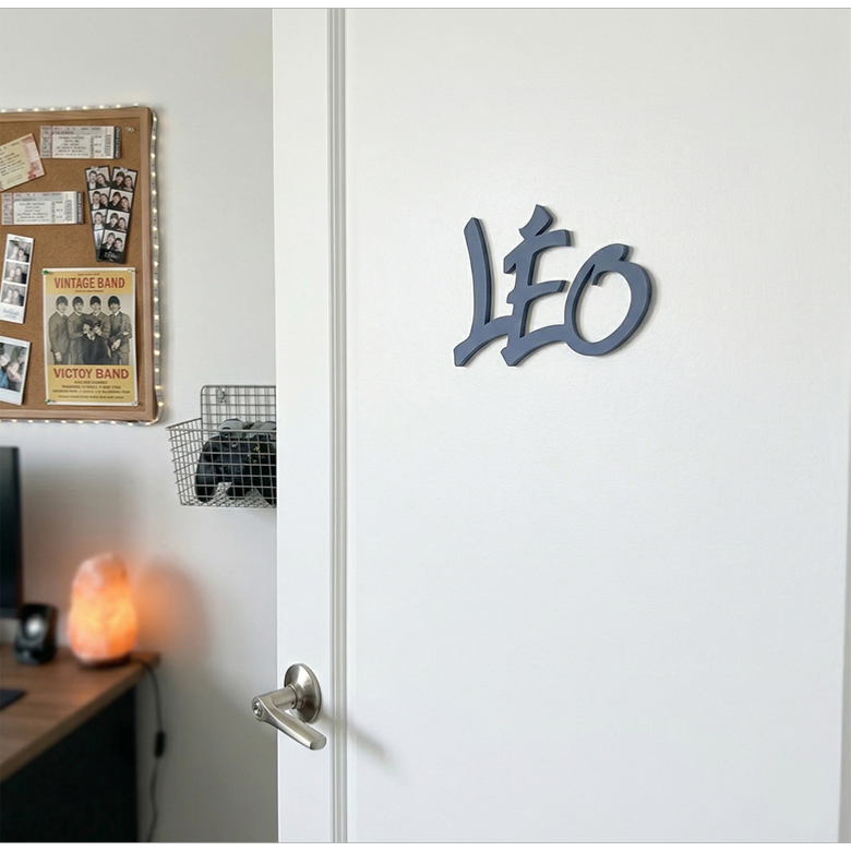 Le prénom est découpé sur une plaque de MDF 3 mm.