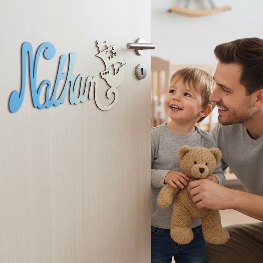 -Personnalisez votre plaque de porte en renseignant le Prénom de votre enfant.