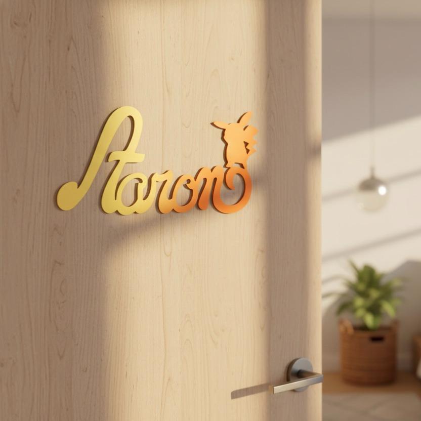 Plaque de Porte Personnalisée en Bois - Motif Pikachu - Couleur Jaune/Orange