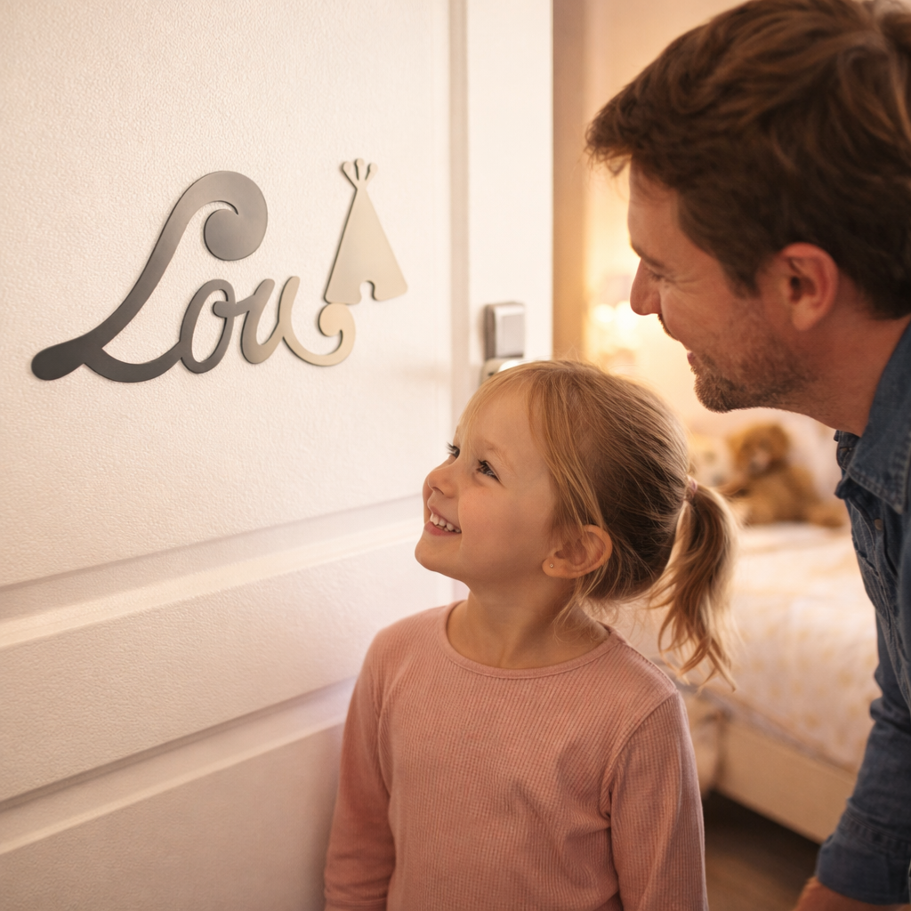 -Personnalisez votre plaque de porte en renseignant le Prénom de votre enfant.