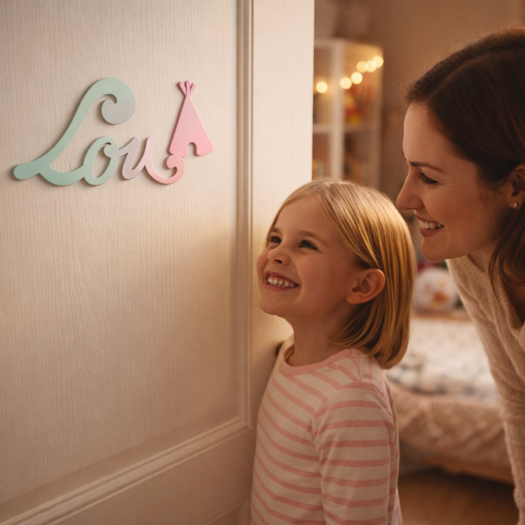 Vous pouvez également mettre  cette jolie plaque de porte en déco dans la chambre de votre enfant.