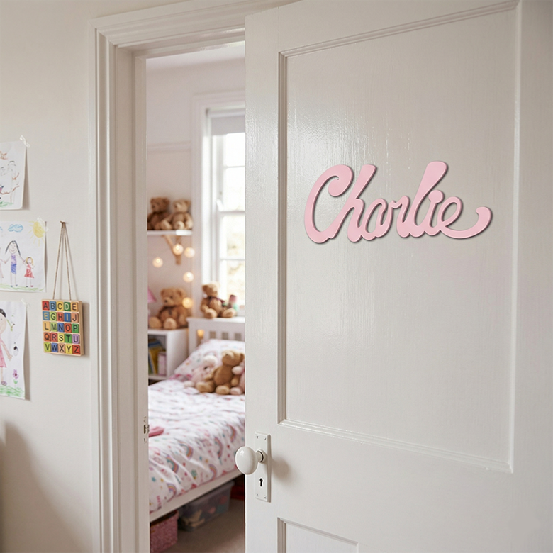 Vous pouvez également mettre  cette jolie plaque de porte en déco dans la chambre de votre enfant.